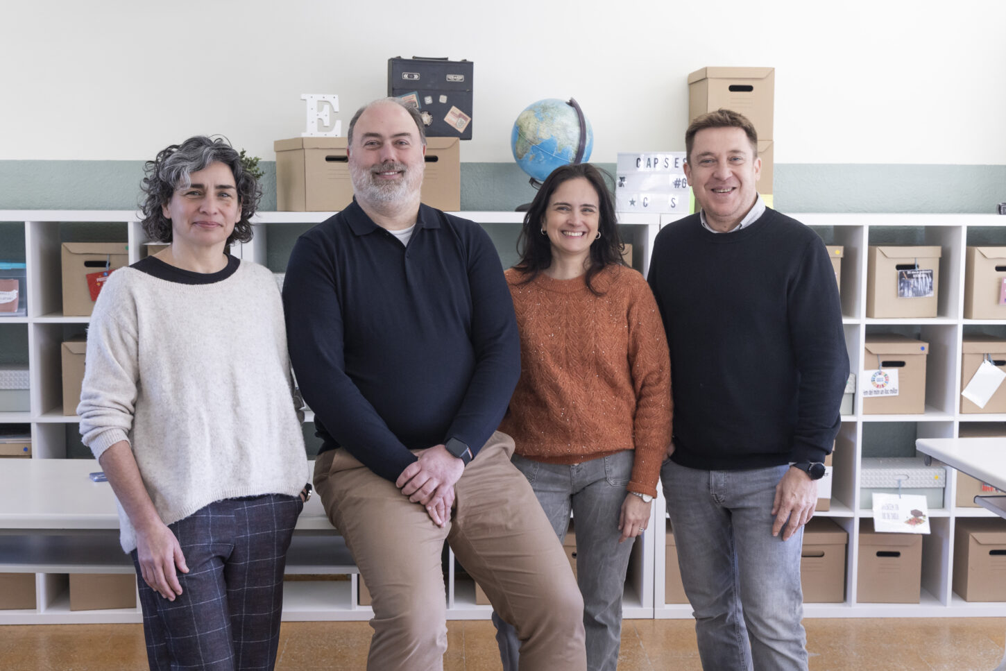 A l’esquerra, Quim Martin Bernadó, director de l’Escola Ferran i Clua i Eli Gutés d’Ameller, directora de l’Escola Pegaso; i a la dreta Sara Solà Barradès, directora de l’Institut Príncep de Viana i Salva Valverde Acero, director de l’Institut Doctor Puigvert.